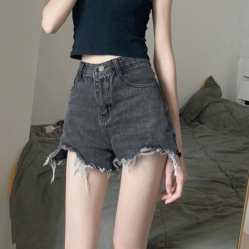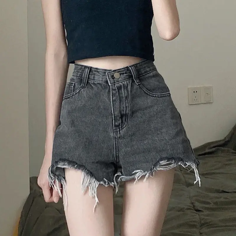 Denim Shorts Women Casual Streetwear Asymmetrical Wide Leg Shorts
