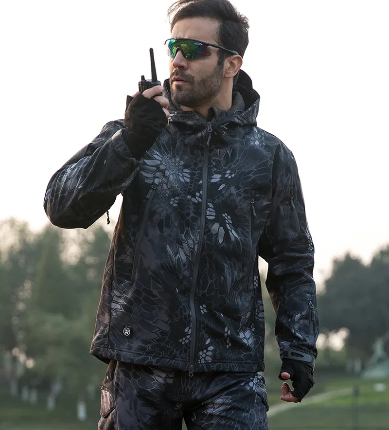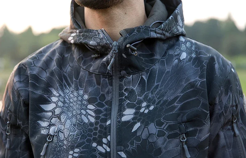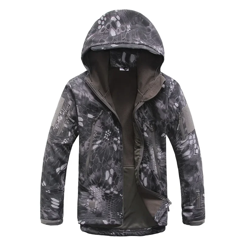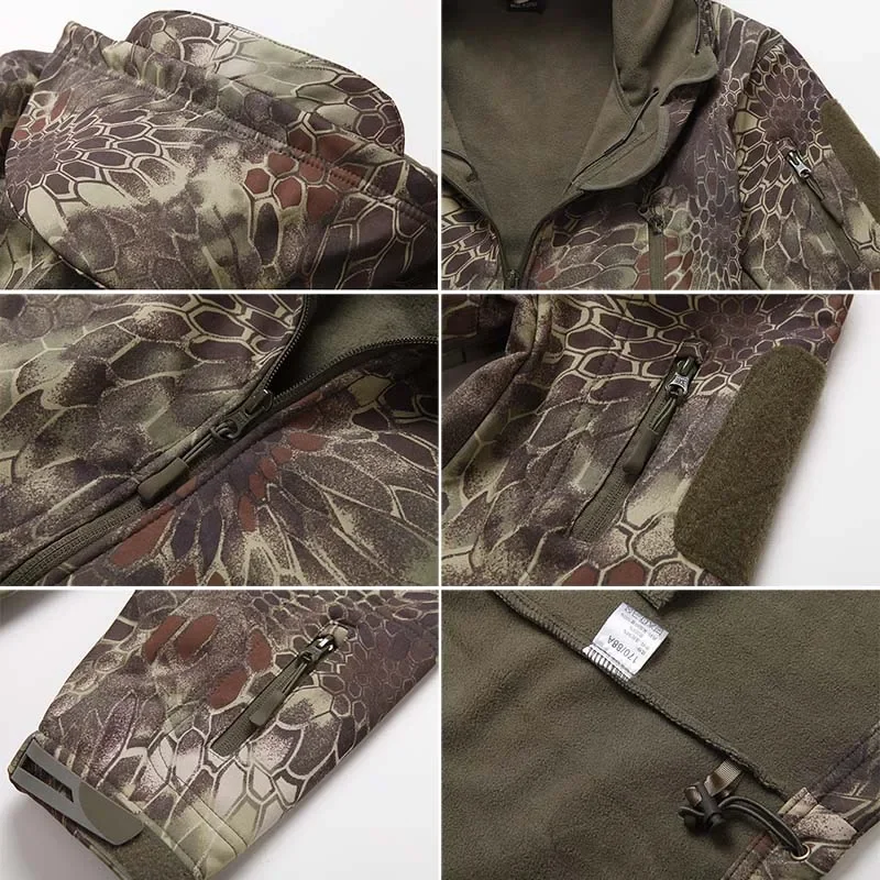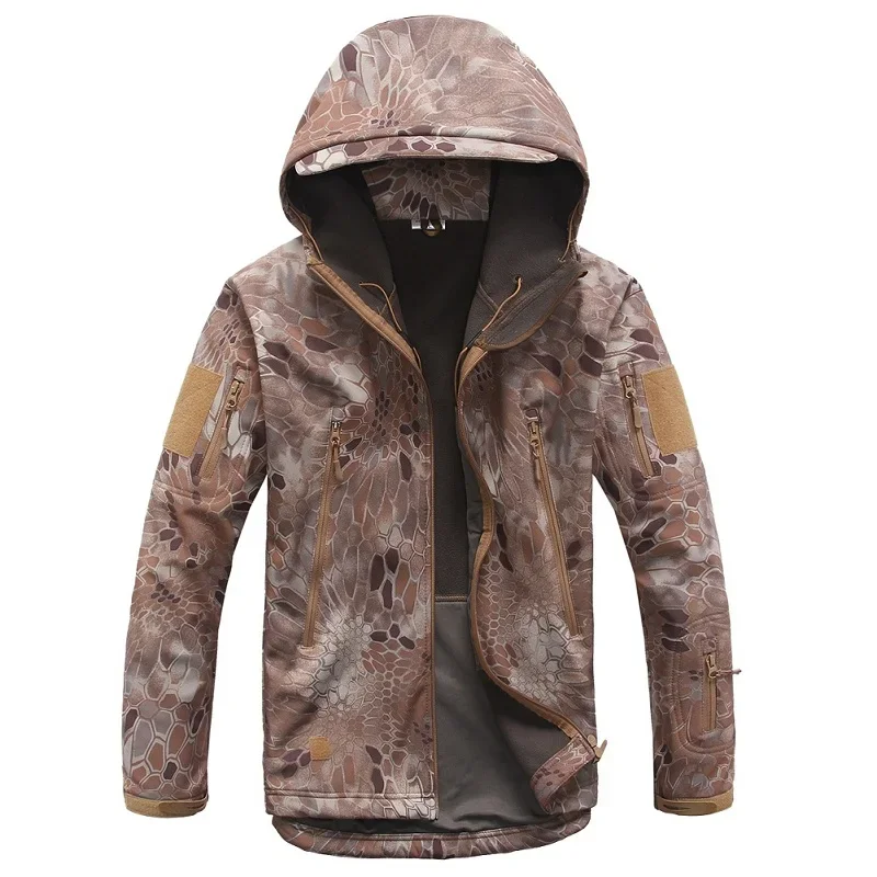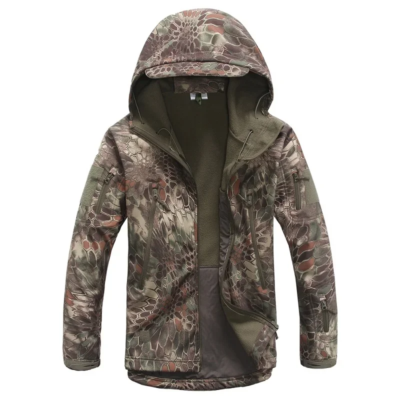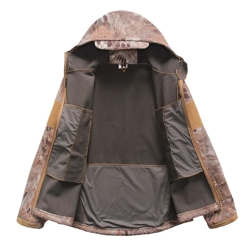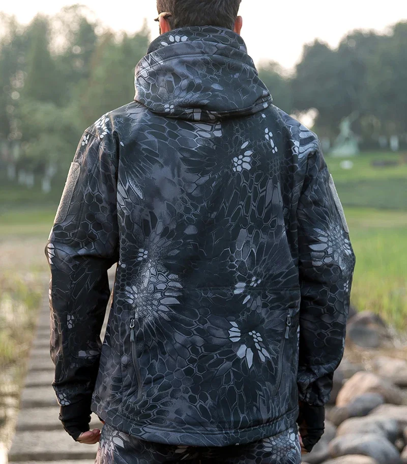 Men's Soft Shell Camouflage Waterproof Fleece Hunting Jacket Outdoor Hiking Fishing Hooded Coat