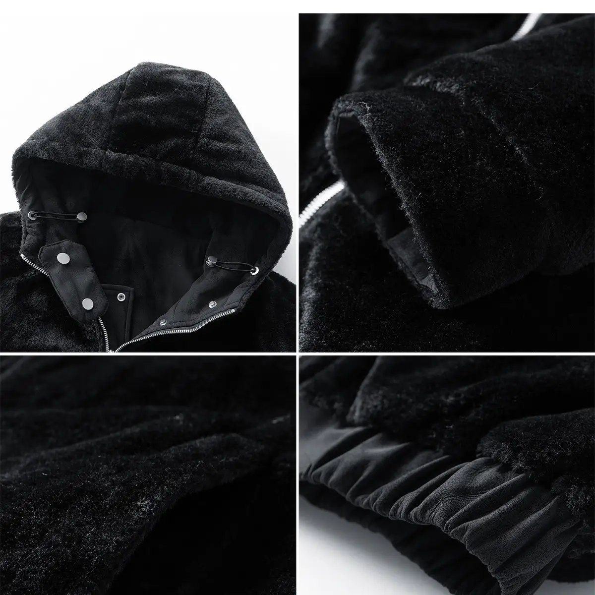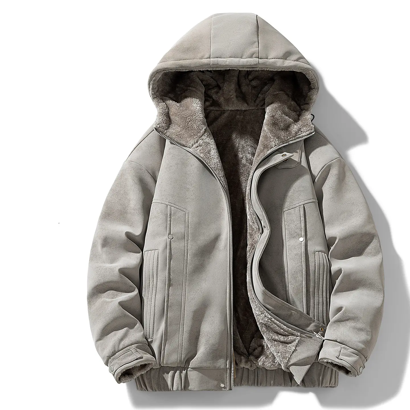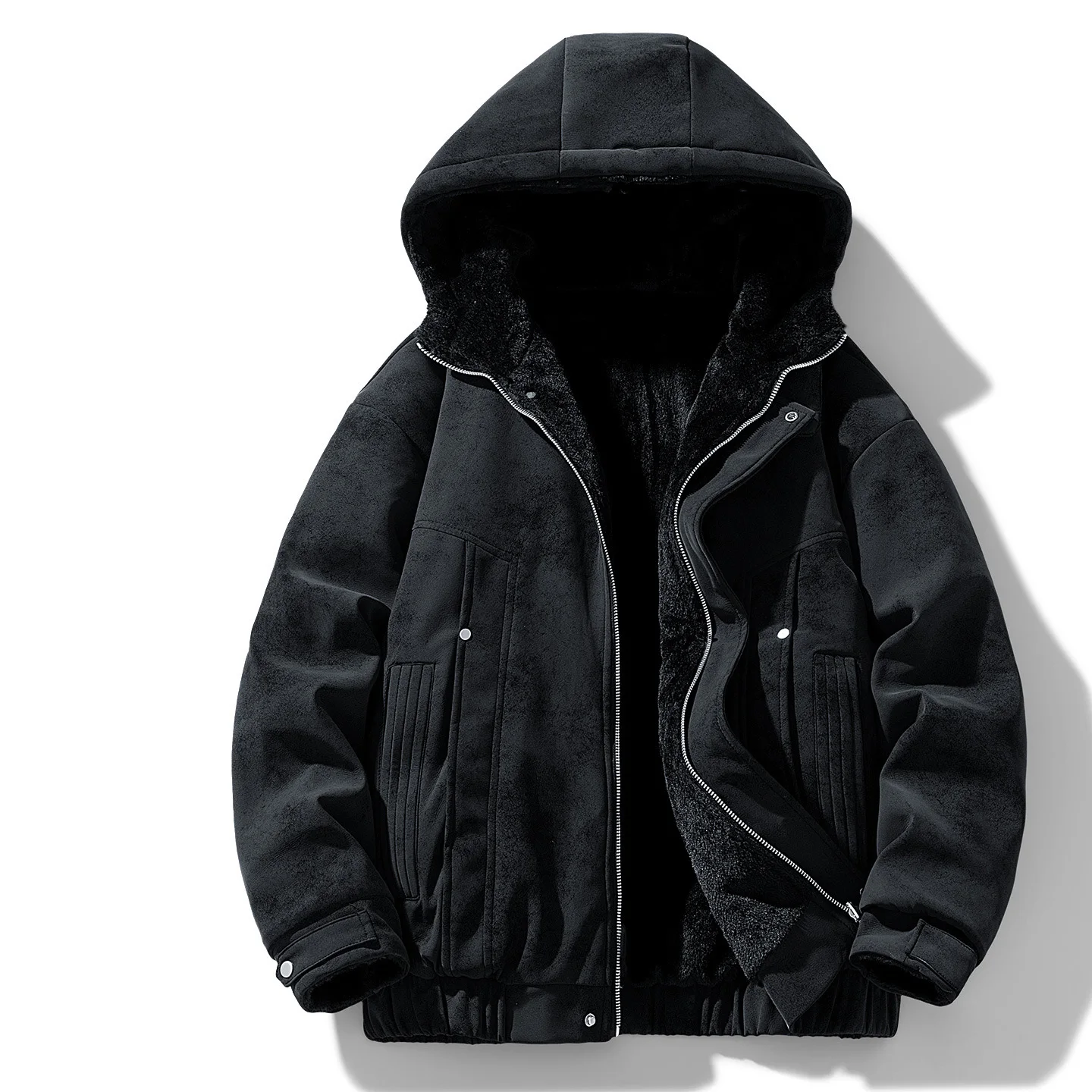 Men's Plush Hooded Jacket Thickened Fleece Long Sleeve Zipper Loose Parka Coat