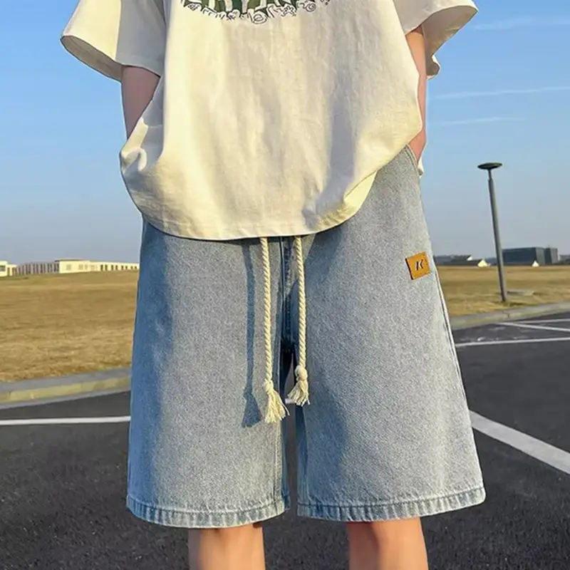 Color:Light-blue Size:M-3XL High-Concerned Chemical:None Decoration:Pockets Style:Casual Fit Type:Loose Wash:Light Closure Type:Elastic Waist Material:Denim Gender:Men..