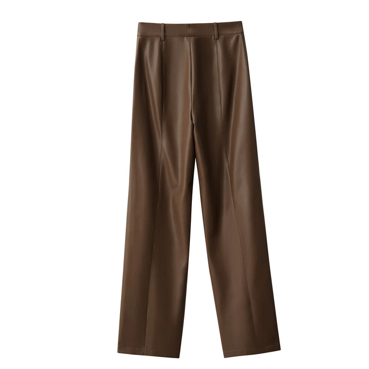 Minimalist Casual Women's PU Leather Loose Straight Pants