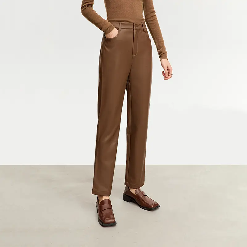 High-Concerned Chemical:None Style:Casual Length:Ankle-Length Pants Material:Viscose Color:Coffee,Black Size:S-2XL Category:Women's Leather Pants..